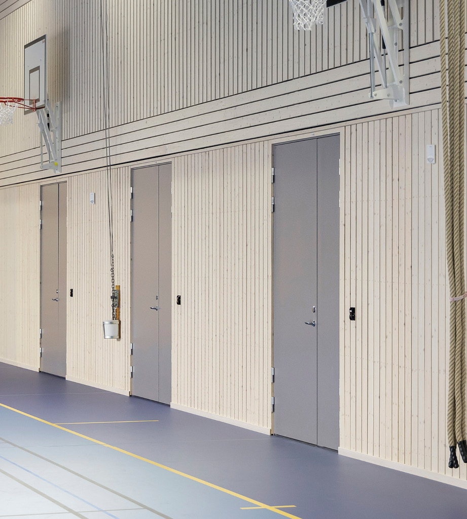 Vi kan erbjuda pardörrar i flera storlekar och med olika klassningar. Dessa pulverlackeras i vår egen anläggning, en mycket slitstark och högkvalitativ ytbehandling.